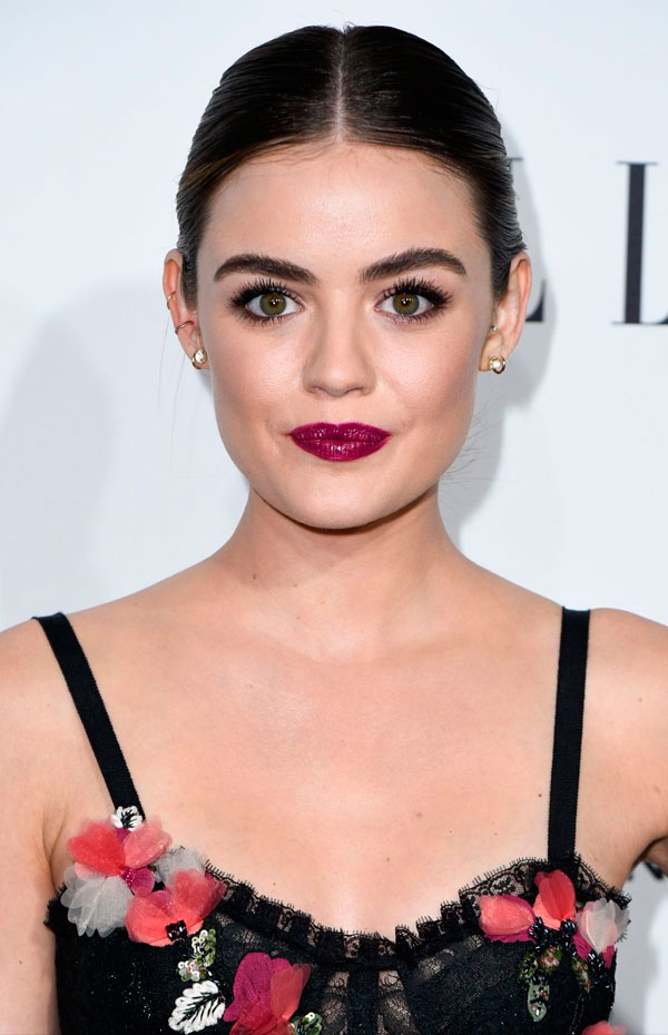 A trend não atrapalha nem mesmo nos looks mais glamourosos. Lucy Hale apostou em um uma make bocão, que deu um ótimo contraste com a sobrancelhas naturais e mais bagunçadas. Esse contraponto é uma ótima dica para os dias com makes mais trabalhadas.