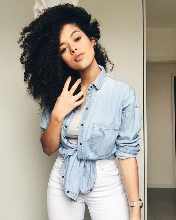 A camisa jeans fica incrível em um look monocromático com uma calça, shorts ou saia jeans.