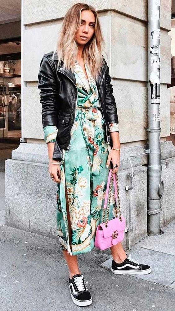 O vestido de seda mais sofisticado com um tênis Vans, cria um efeito super descolado!