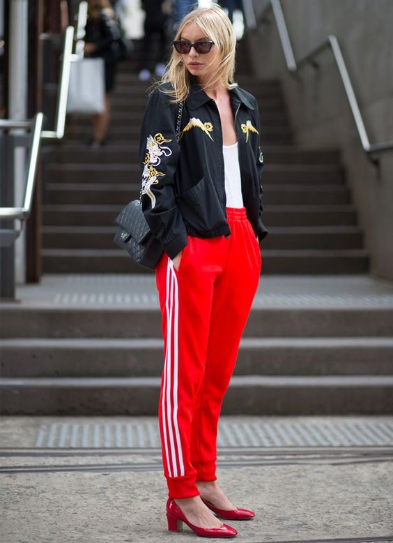 Calça esportiva com um sapato mais sofisticado cria uma mescla que resulta em um super estilo!