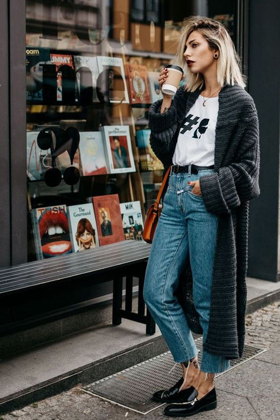 As calças mom dominaram o cenário dos jeans e permitem diversas composições, principalmente com t-shirts, que tem também uma característica antiguinha.