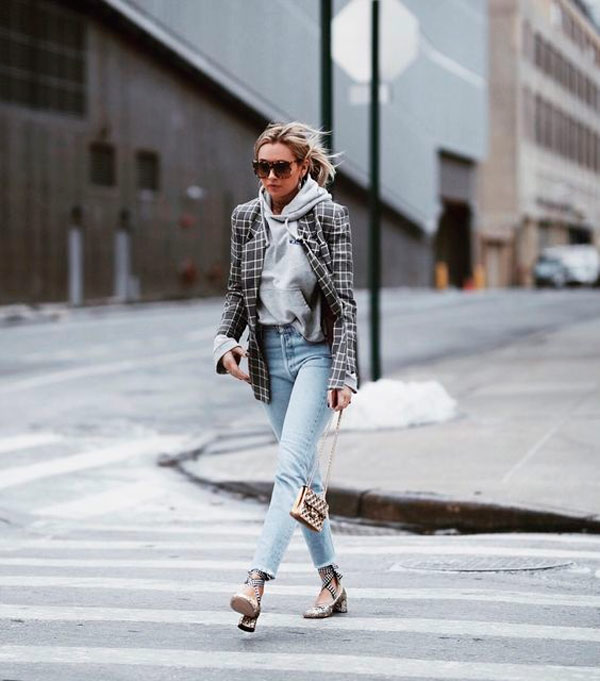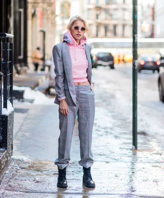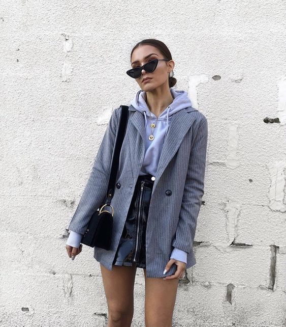 Uma das combinações que é a minha favorita para este clima mais ameno, é a do moletom sob o blazer. A tendência mescla o look esportivo e confortável, com a peça de alfaiataria que deixa o look mais elegante e impecável.