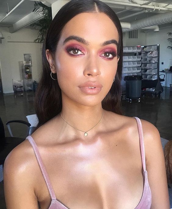 Um pouco de brilho na sombra, durante o dia, em um casamento na praia fica lindo! O restante da maquiagem precisa ser bem natural, esqueça a pele carregada. Um pouco de brilho, vai deixar a maquiagem leve e um ar divertido.