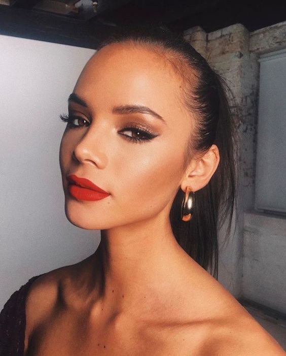 Delineado e um belo batom vermelho, fica lindo no casamento no campo! Ainda mais se for em um clima vintage campestre. A noiva fica extremamente charmosa e estilosa.
