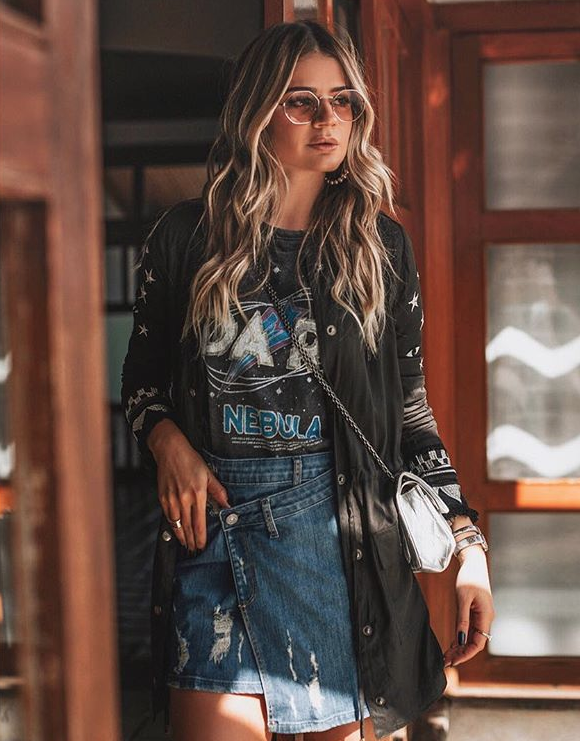 @thassianaves veste: T-Shirt + Saia Jeans