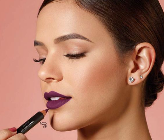 Geminianas são vibrantes, expansivas e muito comunicativas. Na maquiagem fica evidente escolhas por batons intensos, como um roxo nada básico.