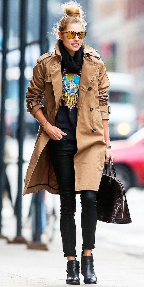 Looks com casaco podem dar certo com calça jeans, tênis, saia midi e até com top cropped, e o trench coat, uma das peças mais curingas para a ocasião. Além do tradicional nos tons caramelo, há diversas opções coloridas e estampadas que podem se adaptar a diversos estilos.