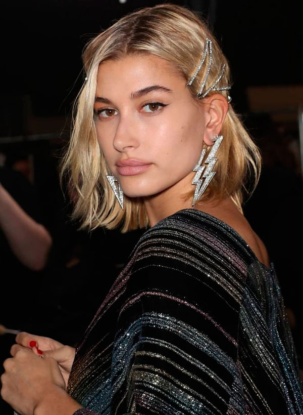 Quem ama um brilho? Haile Baldwin optou pelas versões bem glam de grampo, com muito brilho e aquele penteado glow que as fashion girls tanto amam.