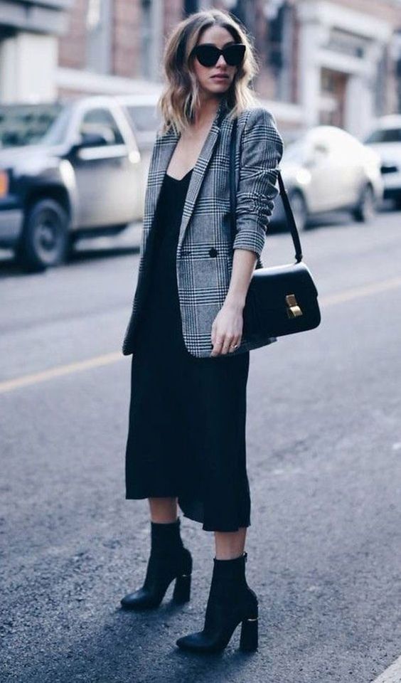 O bom e velho blazer fica ótimo e surpreendente com um vestido.