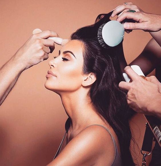 No contorno da sombrancelha: Quem gosta de sombrancelhas naturais e despenteadas pode passar essa dica!! Com um pincel pequeno a Kim aplica o corretivo logo abaixo da linha natural dos pelos, e depois esfuma. Isso ajuda a esconder aqueles fiozinhos indesejáveis e também ilumina a região, levantando o olhar.