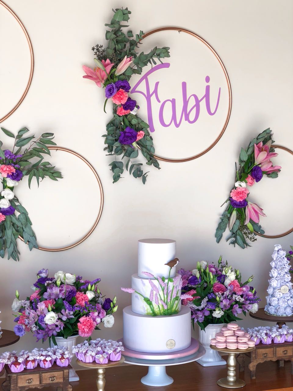 Destaque para o bolo super clean com lavandas e as torres de suspiros da Mariana Franco Junqueira(@marianafrancojunqueira), e os arranjos maravilhosos da Tetê Castanha! Tinham que ser elas, que estão sempre presentes em todas as nossas comemorações!