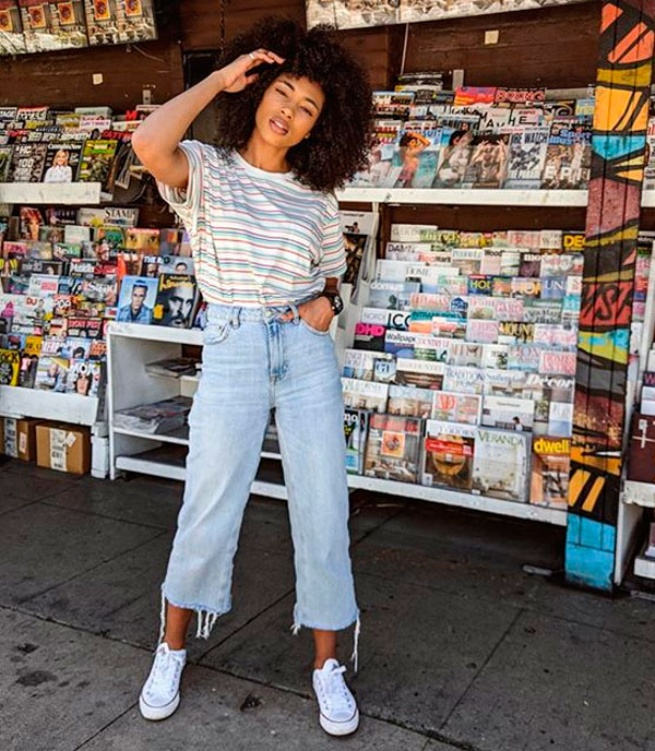 Mas não pense que estamos falando apenas daquelas tees brancas, que vão bem com tudo. As t-shirts que estamos falando hoje também vão bem com tudo, mas vai dar um toque a mais nos looks do dia a dia, elas são as tees listradas.