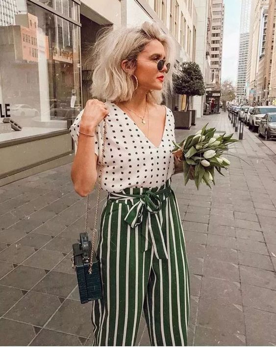 A combinação de duas peças listradas foge do óbvio e trás um diferencial ao look
